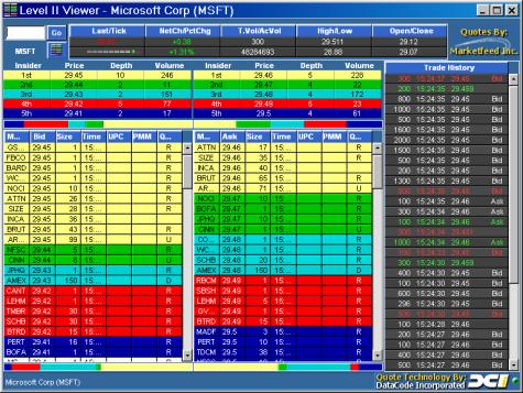 NASDAQ Securities into color-coded instruments. Using live data, the Level II
