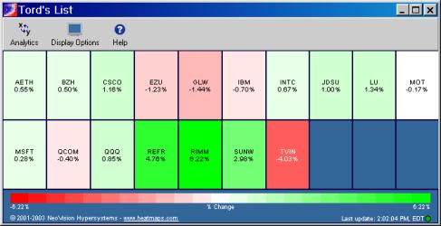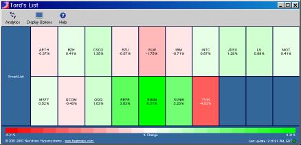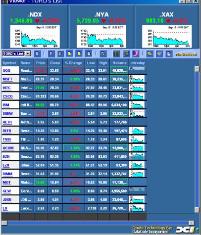 NASDAQ Securities into color-coded instruments. Using live data, the Level II
